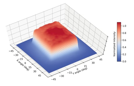 その結果、角度が遠方界の回折光分布は、干渉による強度変調の影響がずっと少なくなり、より均一な光分布が得られます。