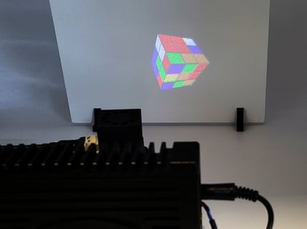 コンピュータ生成のカラー・ホログラフィーには、現在 GAEA-2.1-VIS-036 バージョンと TMS-001 熱管理システムを組み合わせて使用し、表示装置をわずかに加熱して応答を最適化することをお勧めしています。CFS アプリケーション用に最適化された、より高速なディスプレイバージョンが開発中です。