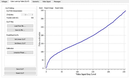 このデバイスはConfiguration Managerソフトウェアと共に提供されます。Configuration Managerを使用して、ジオメトリ設定、明るさ、コントラスト、電気光学応答を新しいガンマ曲線や別のデジタル駆動スキームを適用して変更できます。これらの高度なキャリブレーションには、USB接続を介してコンピュータの仮想COMポートを使用します。
