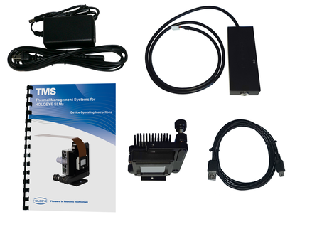 HOLOEYEの高反射率SLMバージョン(誘電体ミラー付き)を使用する場合でも、高出力レーザーアプリケーションにはアクティブな熱管理システムが必要です。HOLOEYEの熱管理システムTMS 002は、高出力レーザーの使用を特に考慮して設計されたアクティブな水冷ヒートシンクを備えています。