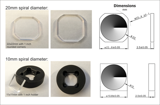 Vortex Photonics社のボルテックスレンズ(別名:スパイラル位相板、ボルテックス位相板)は、入射する